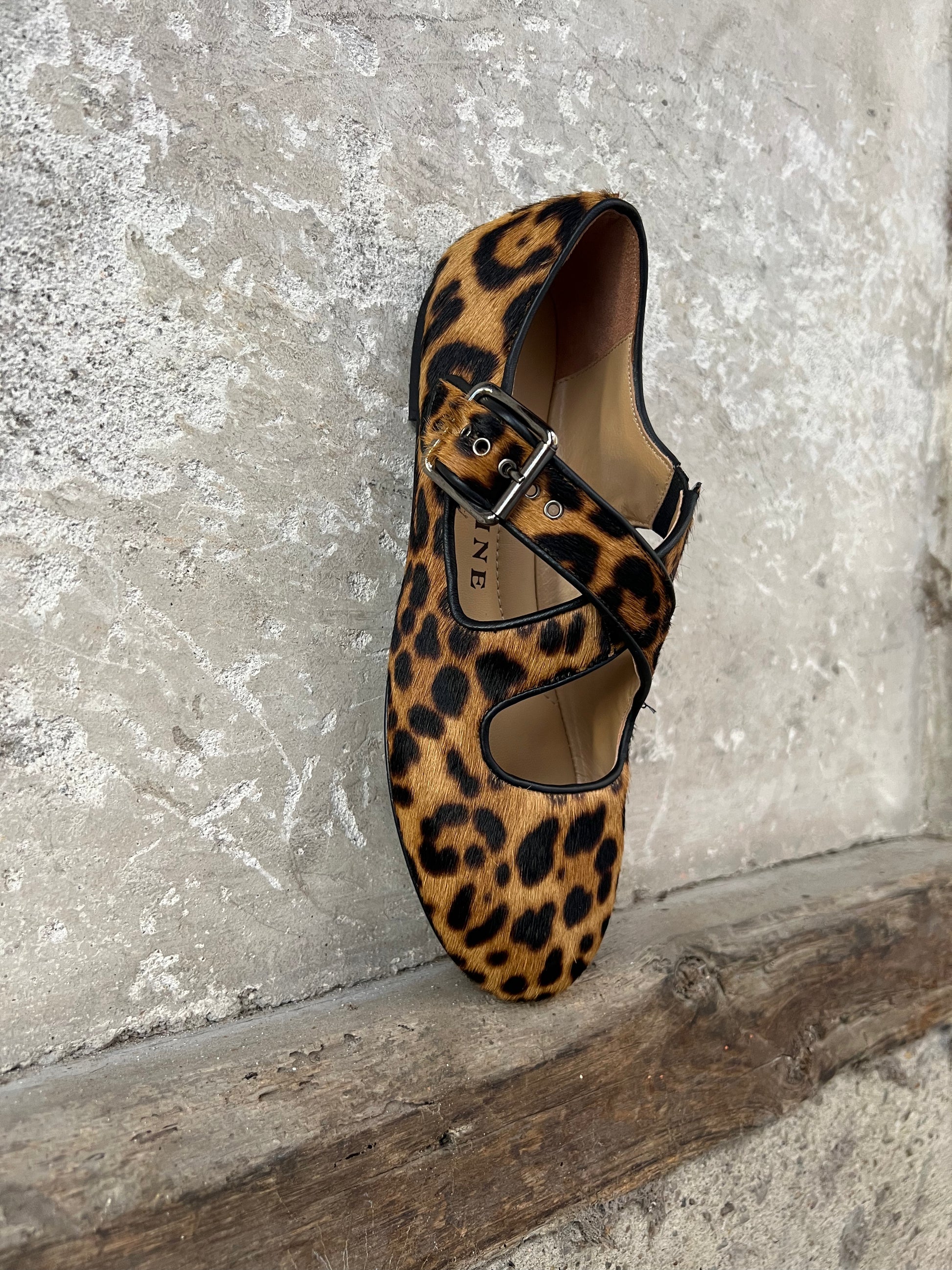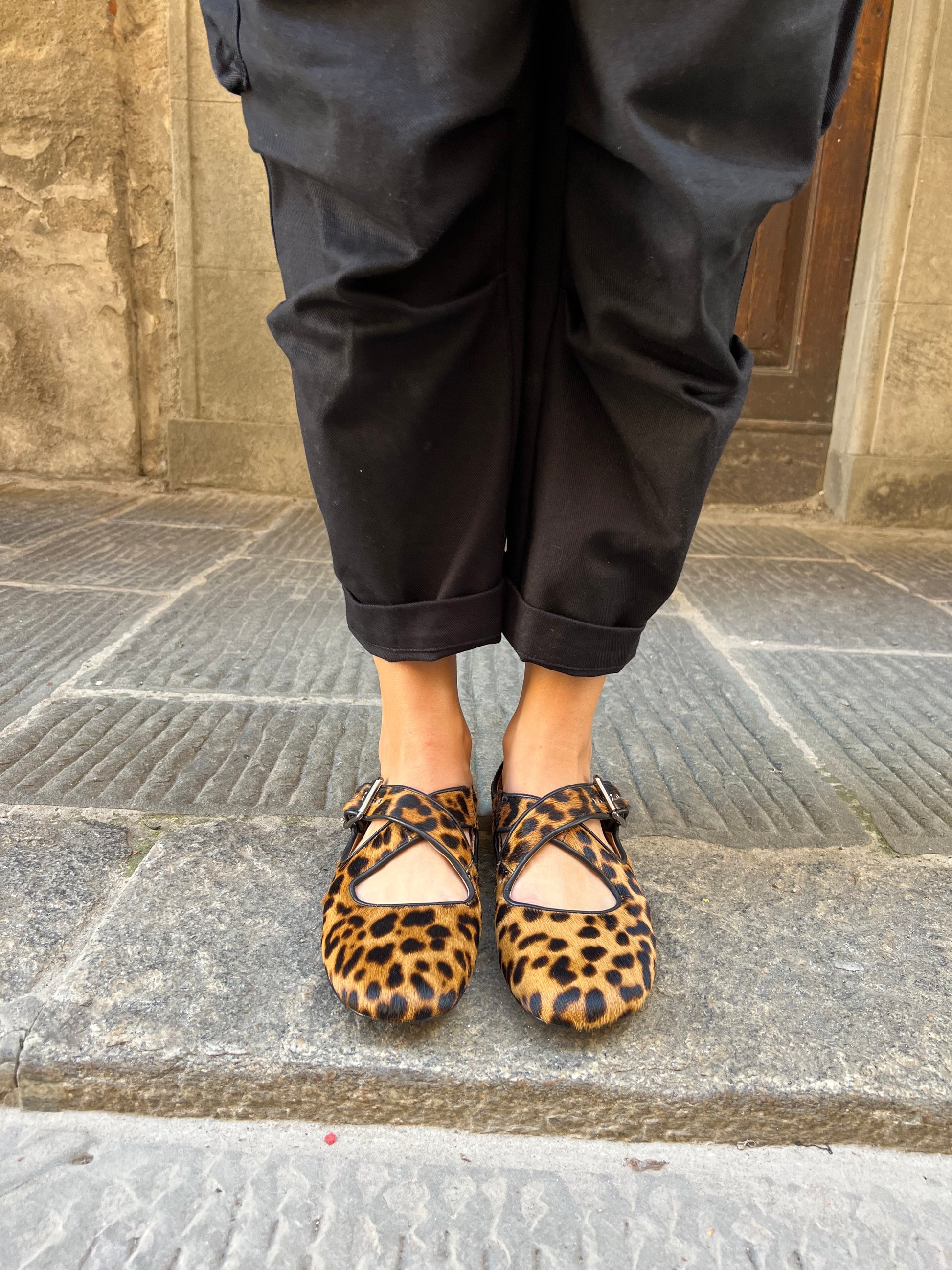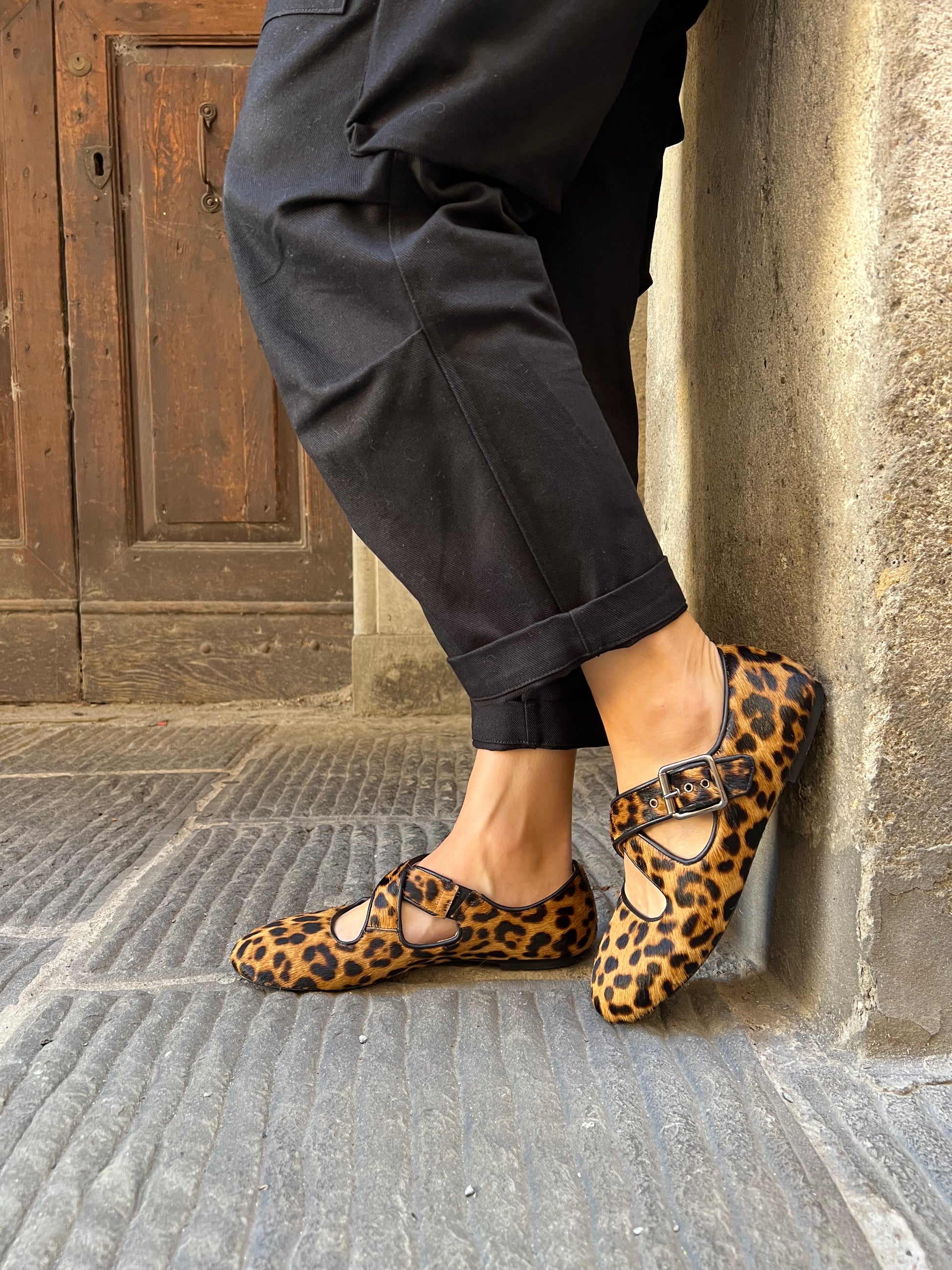 Ballerina in cavallino maculata, con fibbia.